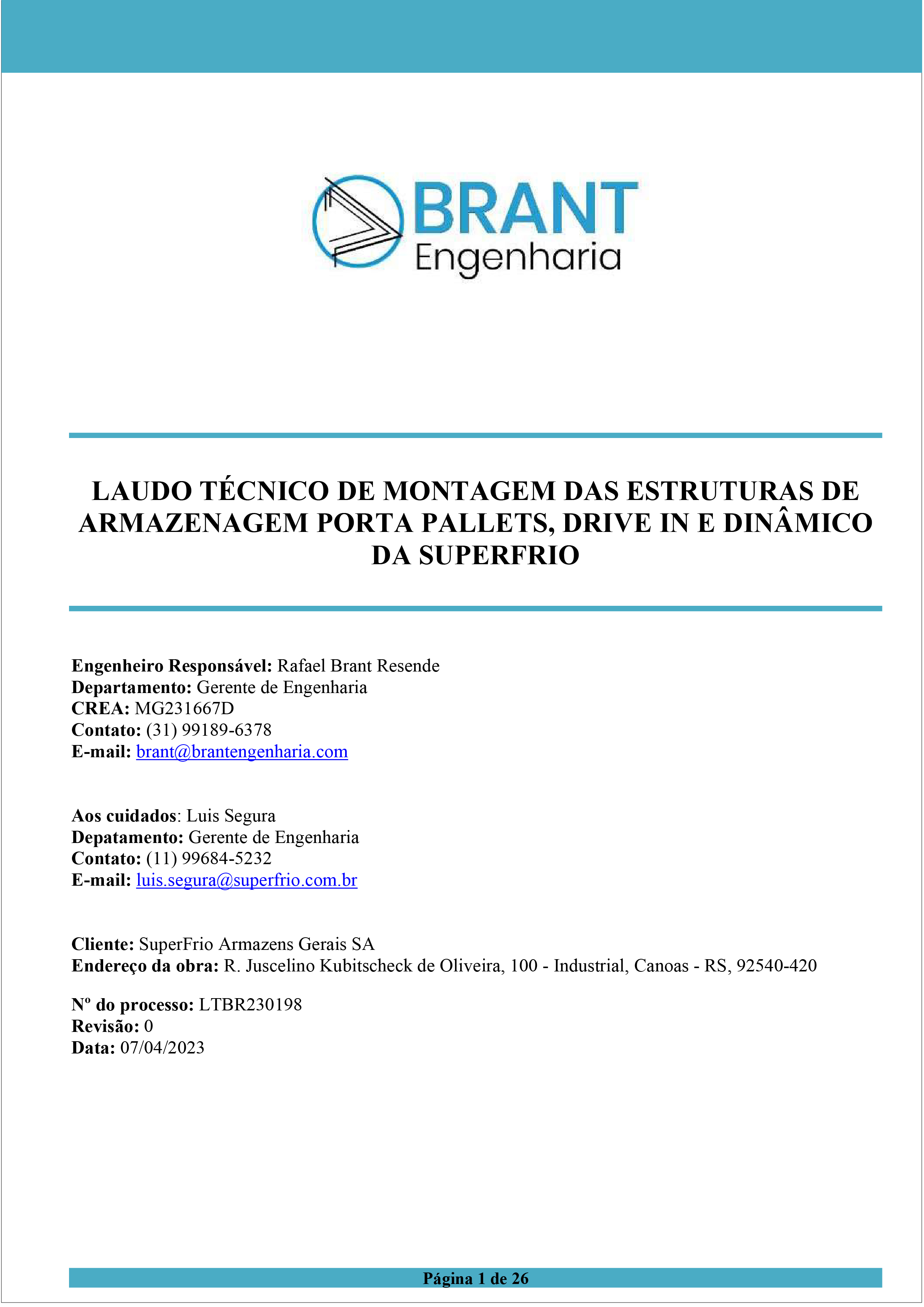 Projeto Logístico Atualizado, Laudo de Montagem, Memorial de Cálculo e ART
